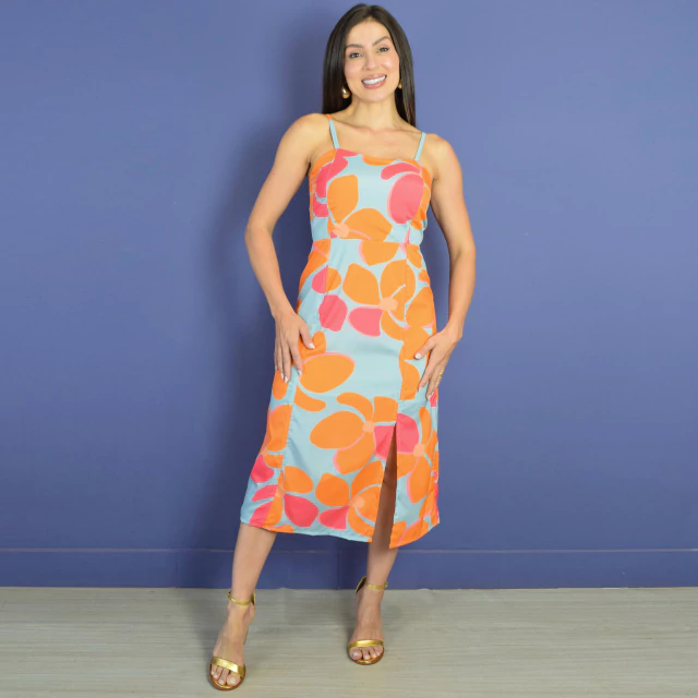 Vestido adulto midi todo na sedinha, tecido leve e fluido. Costas com zíper que se ajusta confortavelmente ao corpo. Alcinha regulável de fácil ajuste. E pra fechar uma fenda que dá aquele toque de sofisticação e charme.
