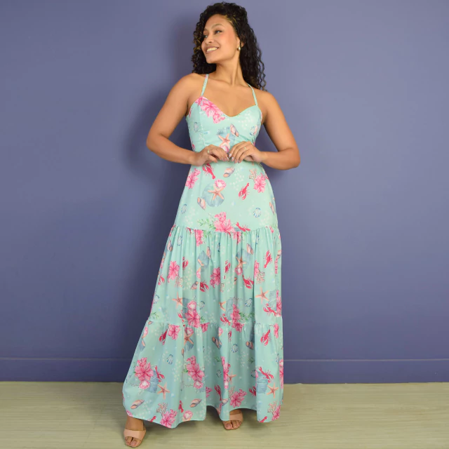 Vestido adulto longo na sedinha, tecido leve. Caimento perfeito no corpo com costas em lastex. Alças reguláveis de fácil ajuste que torna o modelo mais delicado. Detalhe decotado no busto finalizando esse modelo com sofisticação.