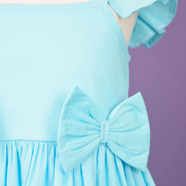 Vestido infantil no azul, com ziper nas costas garantindo a segurança e o conforto da sua pequena. Alças fixas com babadinho. detalhes de lacinhos na frente tornando o modelinho ainda mais delicado.