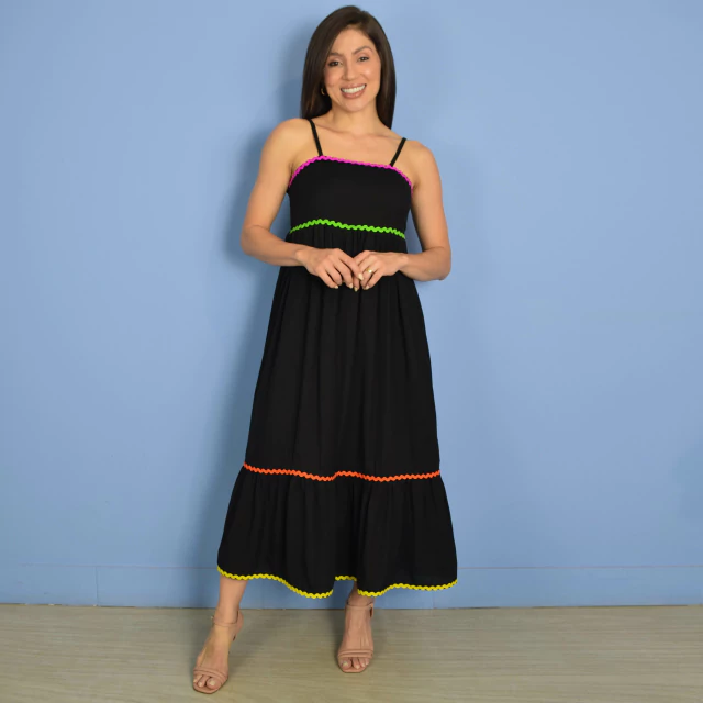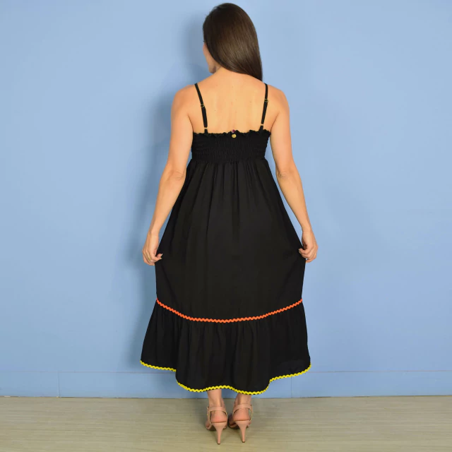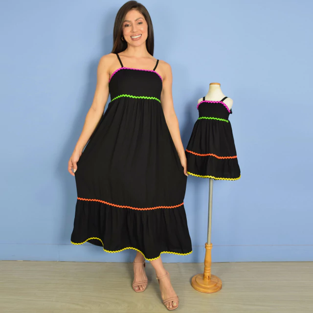 Este kit de vestidos Tal Mãe Tal Filha contém um vestido adulto supermidi, com costas em lastex tornando ainda mais confortável e aumentando o encaixe do modelo no corpo. Alças reguláveis de fácil ajuste. Detalhes de sianinhas coloridas que dão um toque charmoso ao modelo. E um vestido infantil com costas em lastex que garantem maior conforto para sua pequena. Alças reguláveis de fácil ajuste. E detalhes de sianinhas coloridas finalizando esse modelo com muita delicadeza.